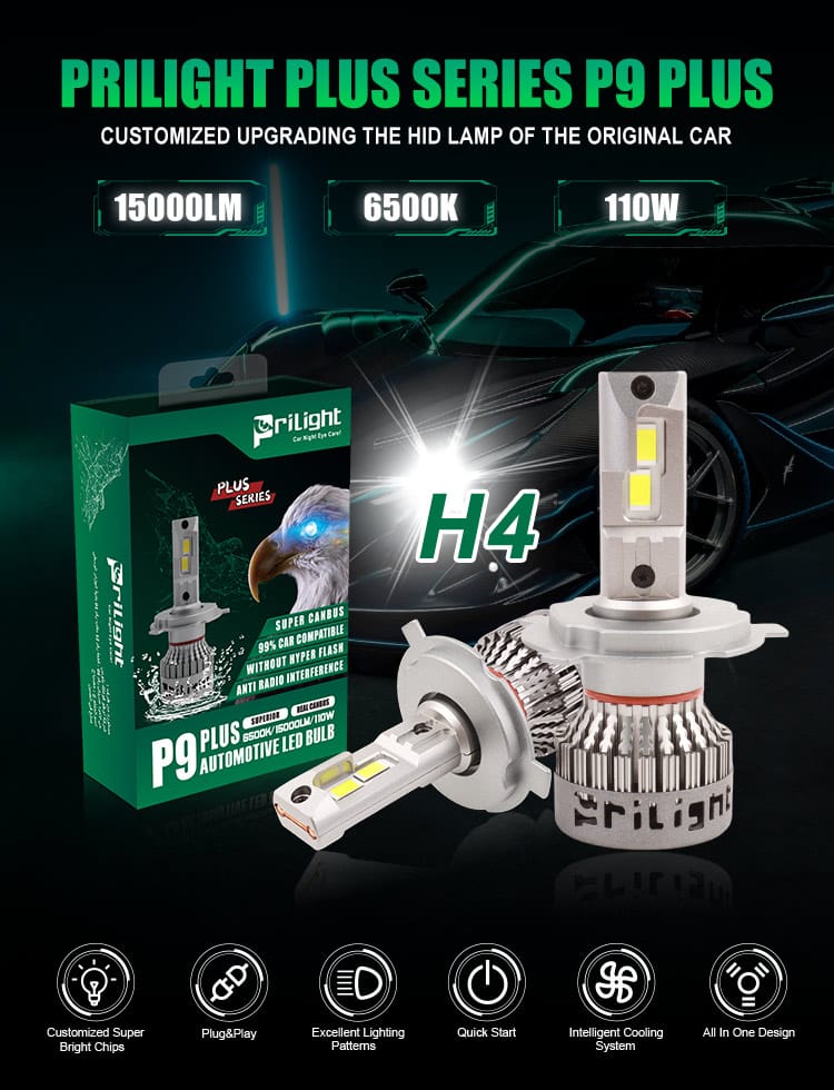 Bombilla LED Prilight P9 Plus Faros LED H4 110 W 6500 K Faros LED superbrillantes de luz alta y baja