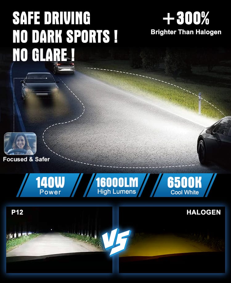 🔍Prilight P12 Bombilla LED para faros delanteros de alta potencia 140W 16 000lm kit LED H4