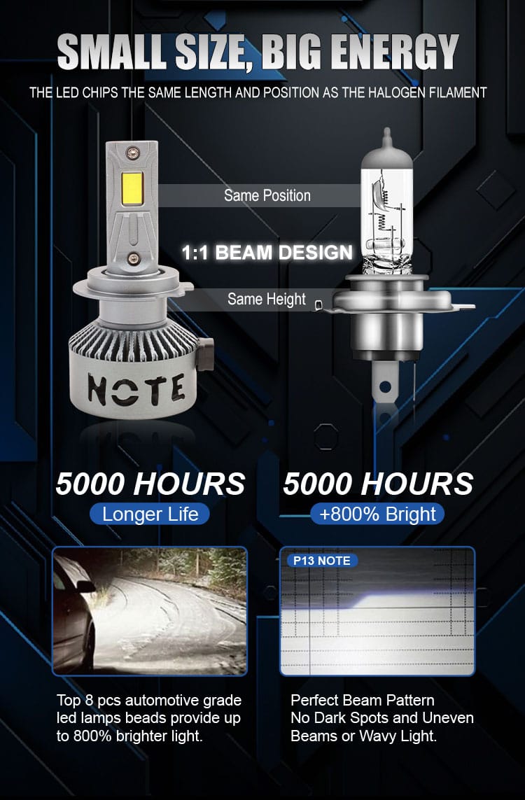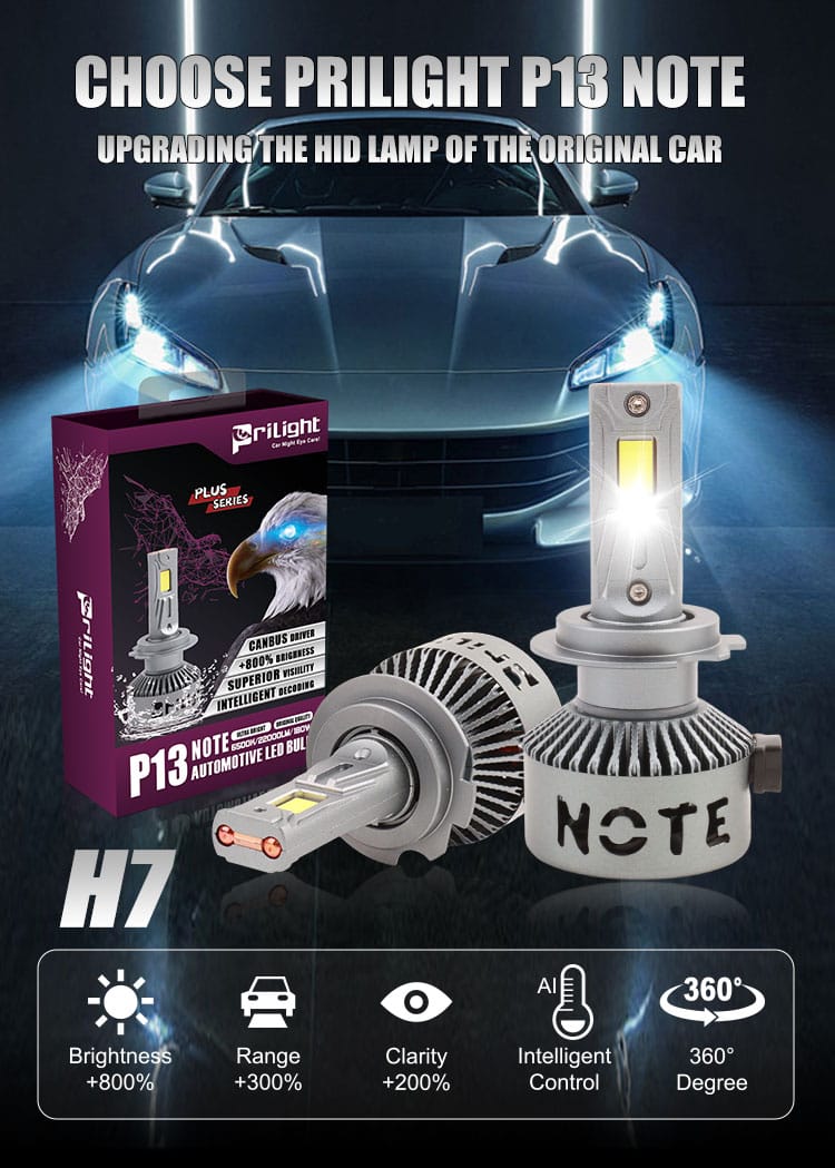 Prilight P13 Nota Bombilla LED de 180 W Faros LED H7 22000LM Accesorios para automóviles superbrillantes Faros LED