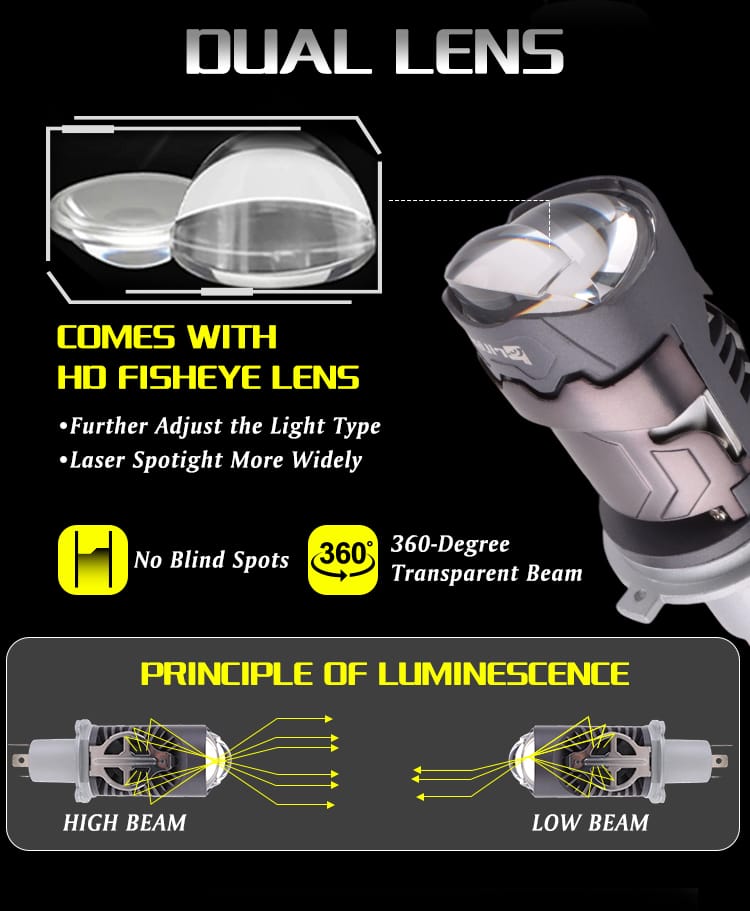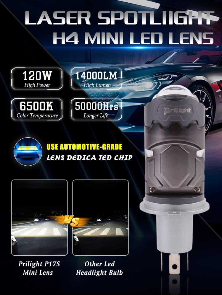 Prilight P17S Miniproyector de doble lente láser, 120 W, 14 000 lm, LED, para faros delanteros