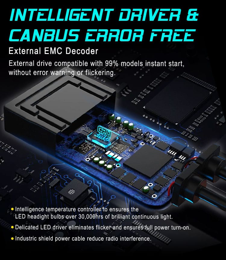 INTELLIGENT DRIVER & CANBUS ERROR FREE | External drive compatible with 99% models instant start, without error warning or flickering. |