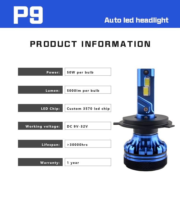 Prilight P9 PRO Faros LED H4 100W 10000LM Sistema de iluminación automática