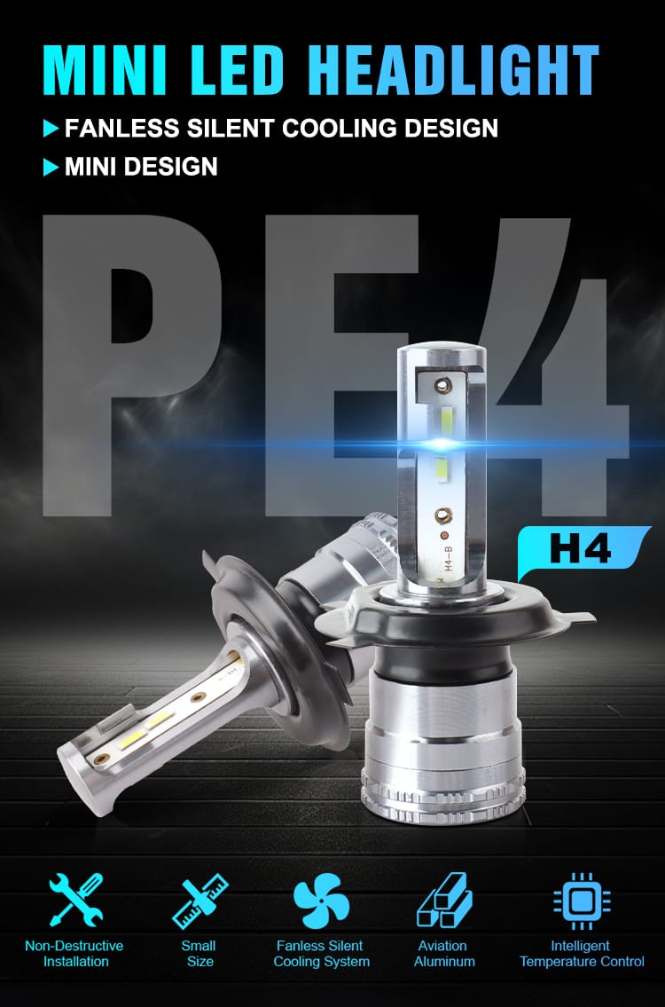 Prilight PE4 Bombilla LED para faros delanteros H4 40W 8000lm personalizada sin ventilador