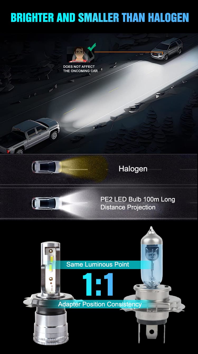 🔍Prilight PE4 Bombilla LED para faros delanteros H4 40W 8000lm personalizada sin ventilador