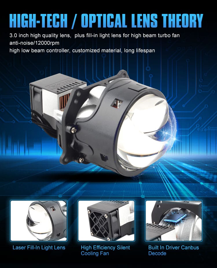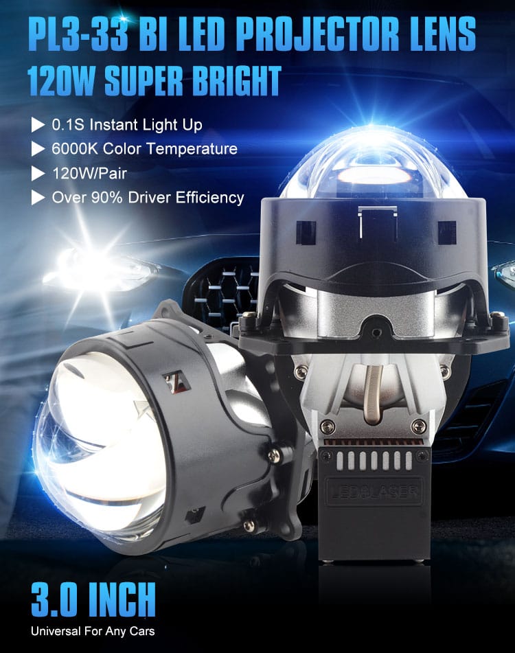 Prilight PL3-33 3 inch Faros LED para coche con lente de proyector con riel láser